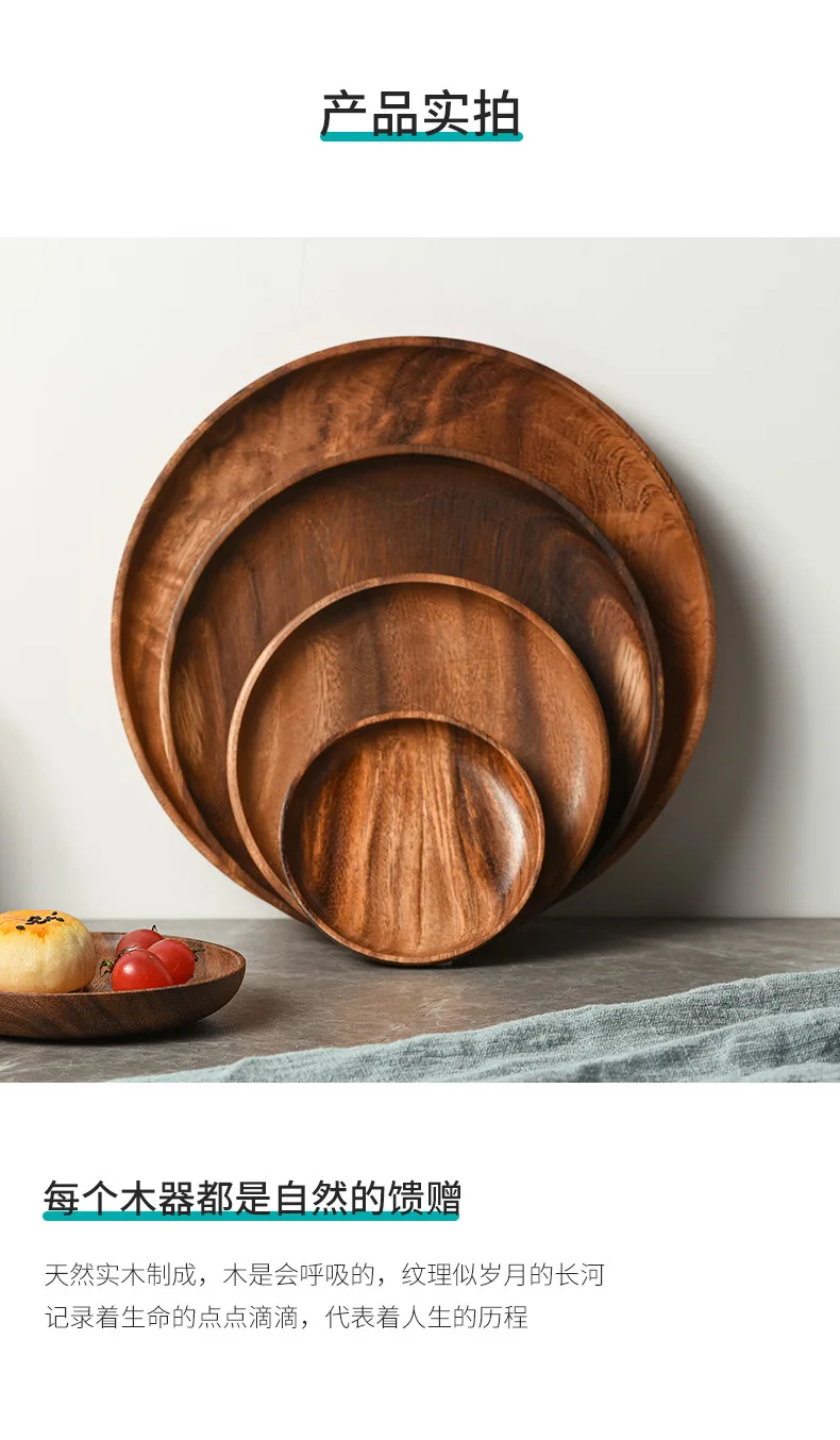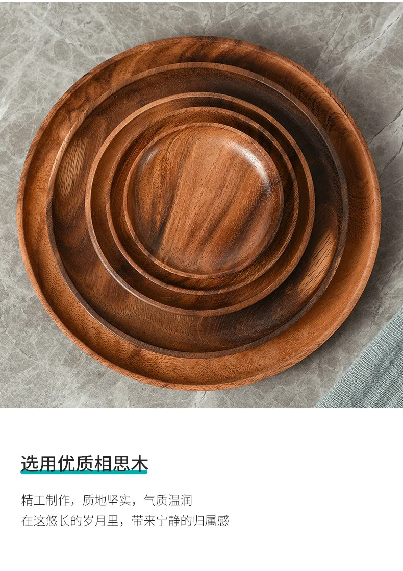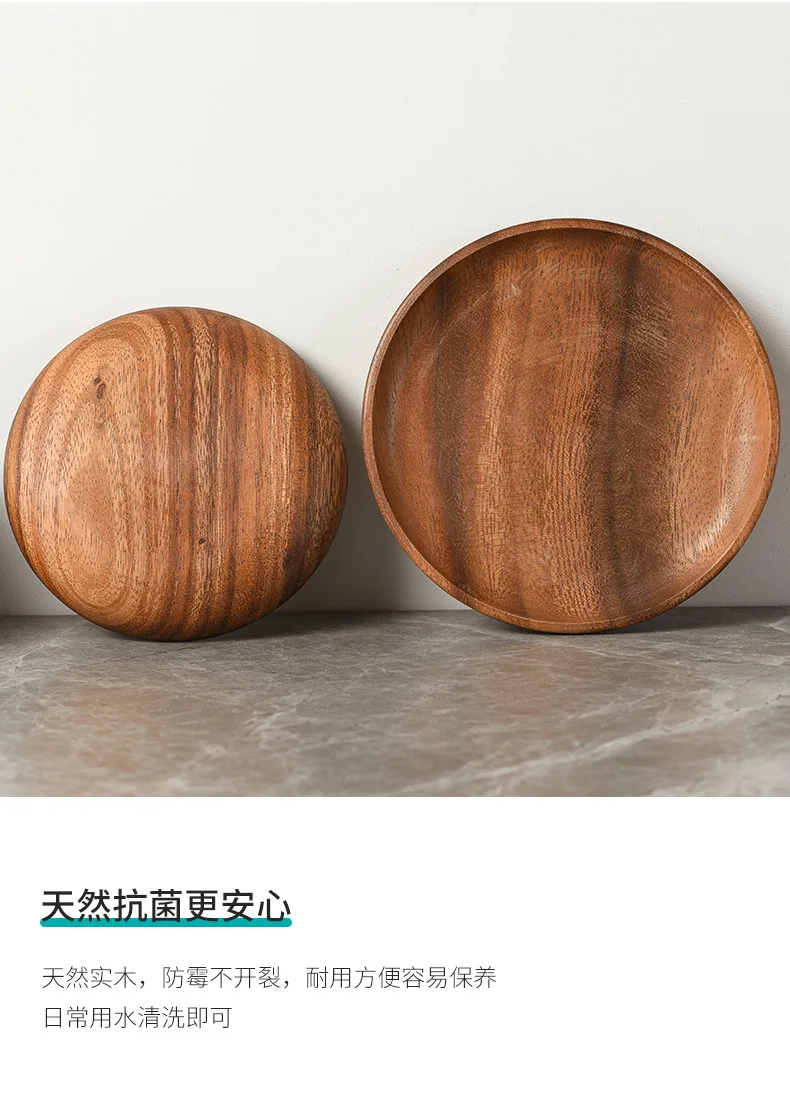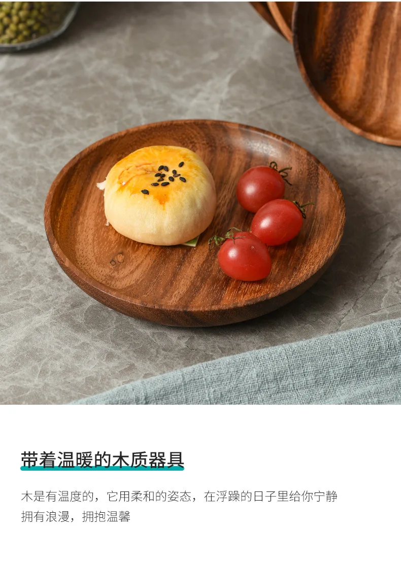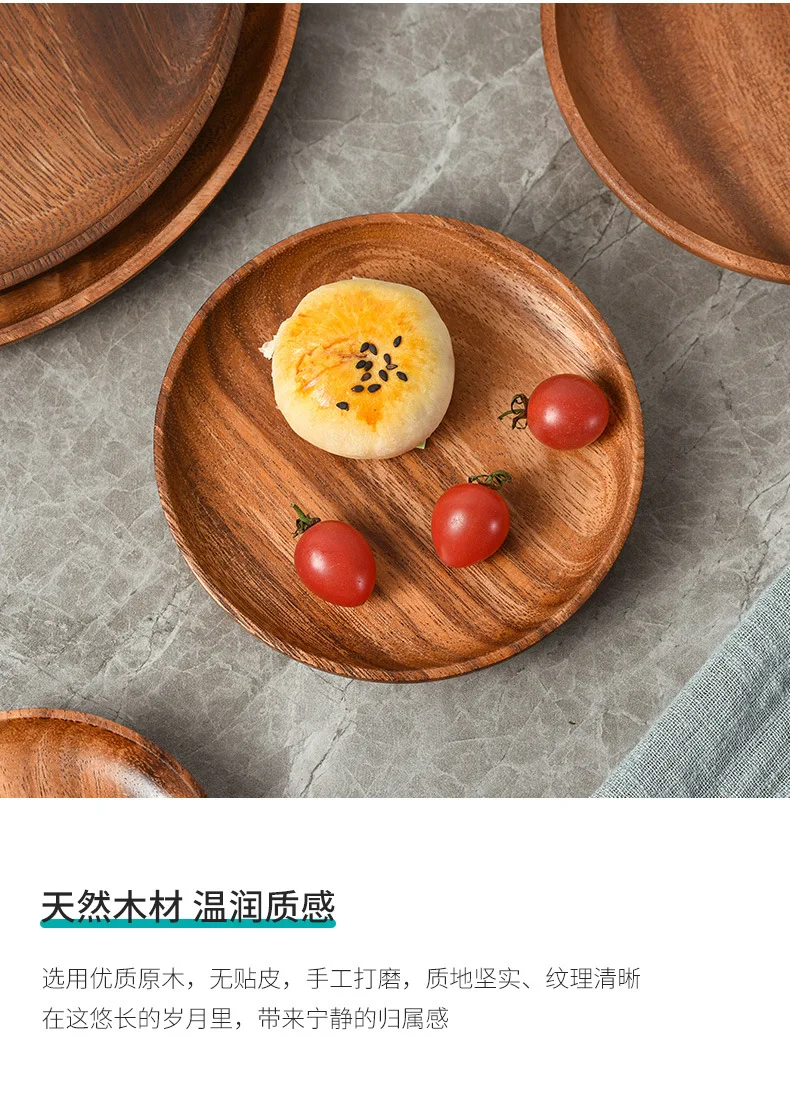 Japanese Household Dishes Acacia Wood Round Tableware Salad Dessert Tray Vintage Wood Dinnerware Set Plates Serving Platter