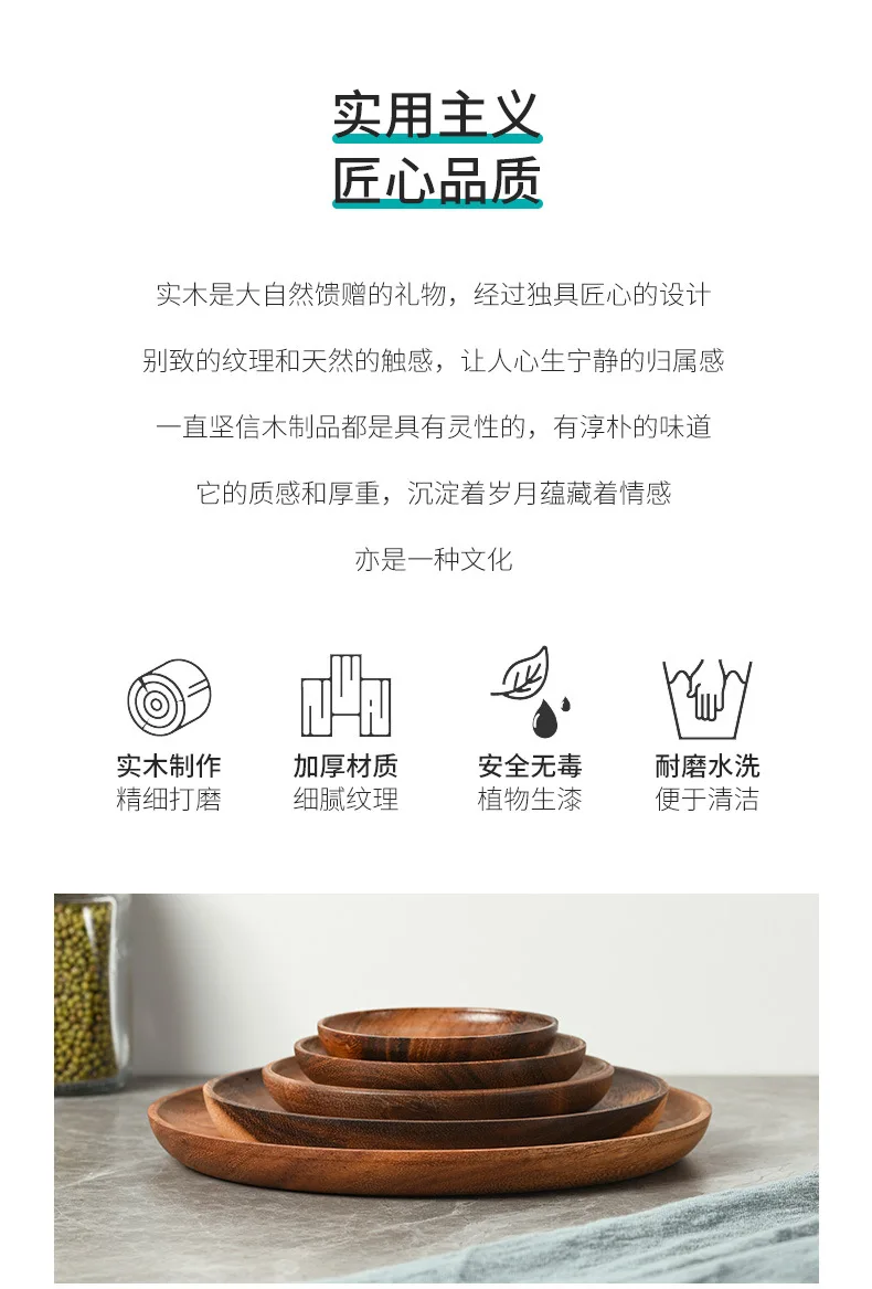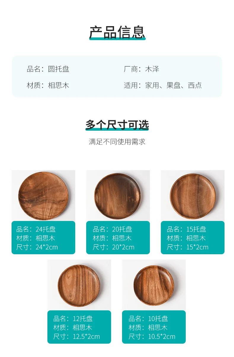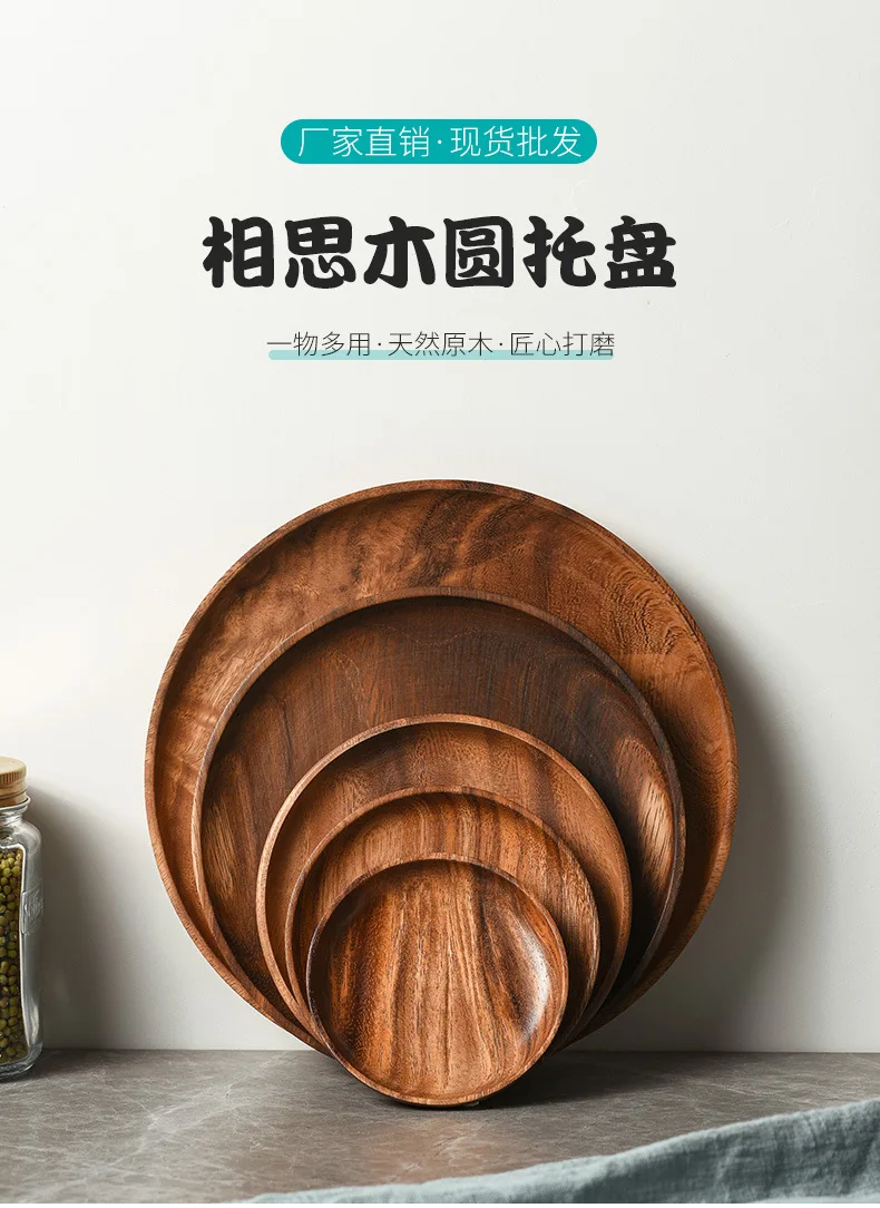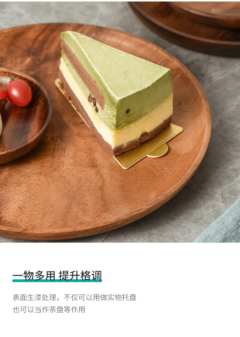 Japanese Household Dishes Acacia Wood Round Tableware Salad Dessert Tray Vintage Wood Dinnerware Set Plates Serving Platter